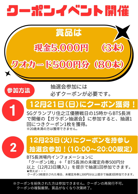 【12月23日(火)】SG優勝戦日の翌々日に使えるクーポン・抽選会(SGグランプリ)