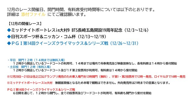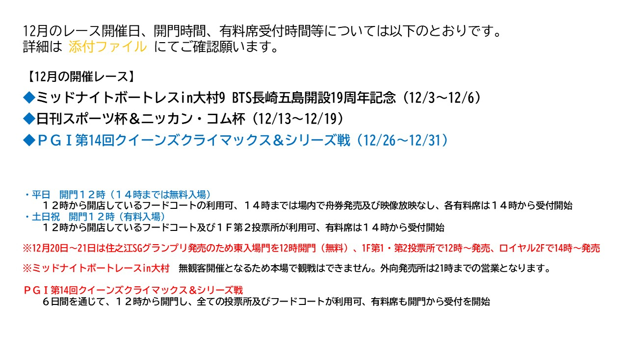 12月の本場開門時間等について