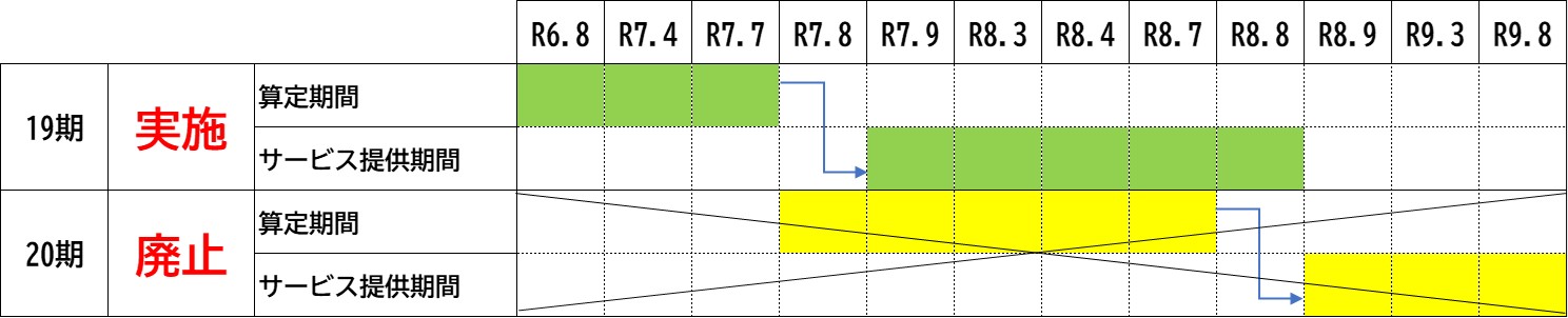 なお、第19期(算定期間:令和6年8月から令和7年7月、サービス期間:令和7年9月から令和8年8月)のサービスについては予定どおり実施させていただきます。