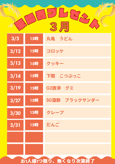 3月来場者プレゼント