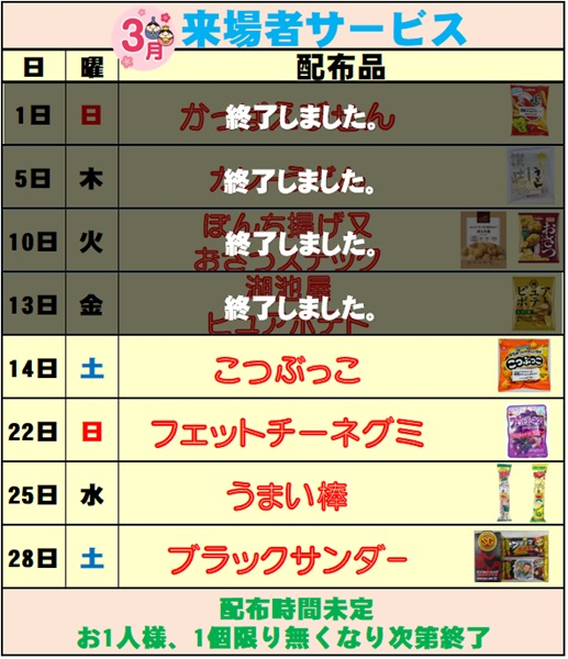 3月来場サービス