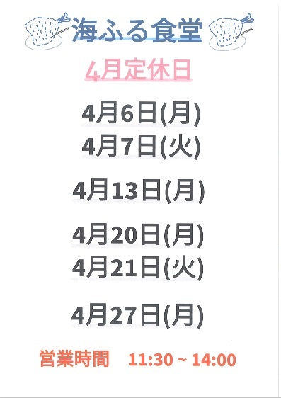 4月の食堂定休日について