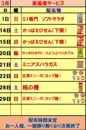 3月の来場者サービス