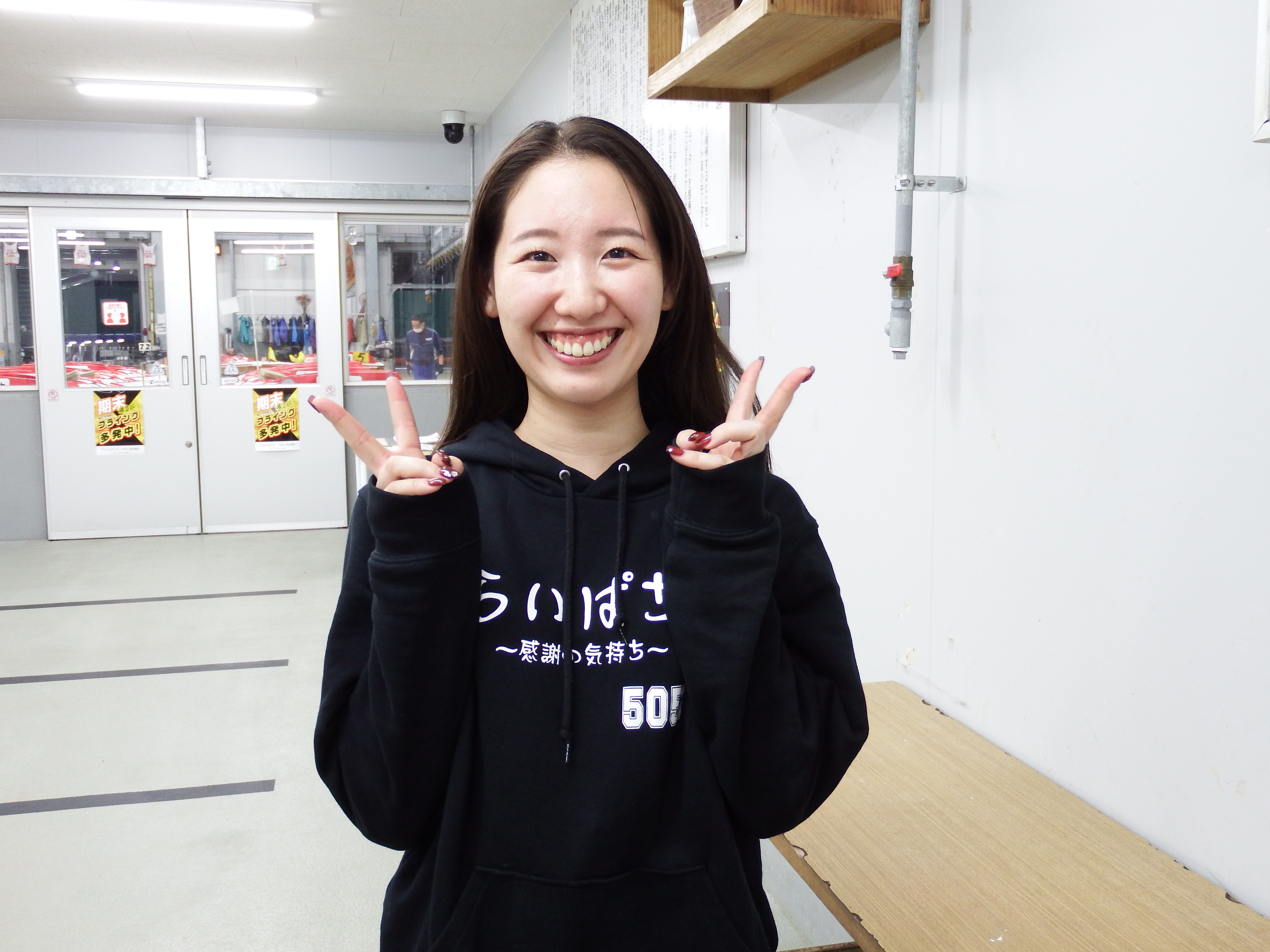 大村は5年ぶりとなる上田選手、「大村は好きですよ。ご飯がおいしいですし、ナイターも好きです。でもスタートは難しいですね。ミッドナイトは2回目(1回目は下関)ですが、違和感はないですよ」とおっしゃられていました☆ 今節のエンジンについても「普通に動いていますし、あと2日も頑張ります!!」と気合バッチリ☆健闘を誓ってくださいました♬ いつも取材の時もとっても優しくて笑顔が素敵な上田紗奈選手へ、今節だけでなく末永くご声援をよろしくお願いいたします~!!