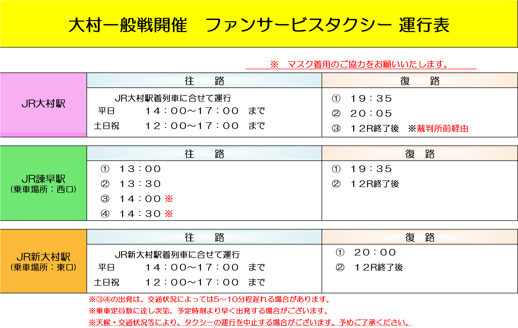 交通状況などにより多少前後する場合がございますので、予めご了承ください。
