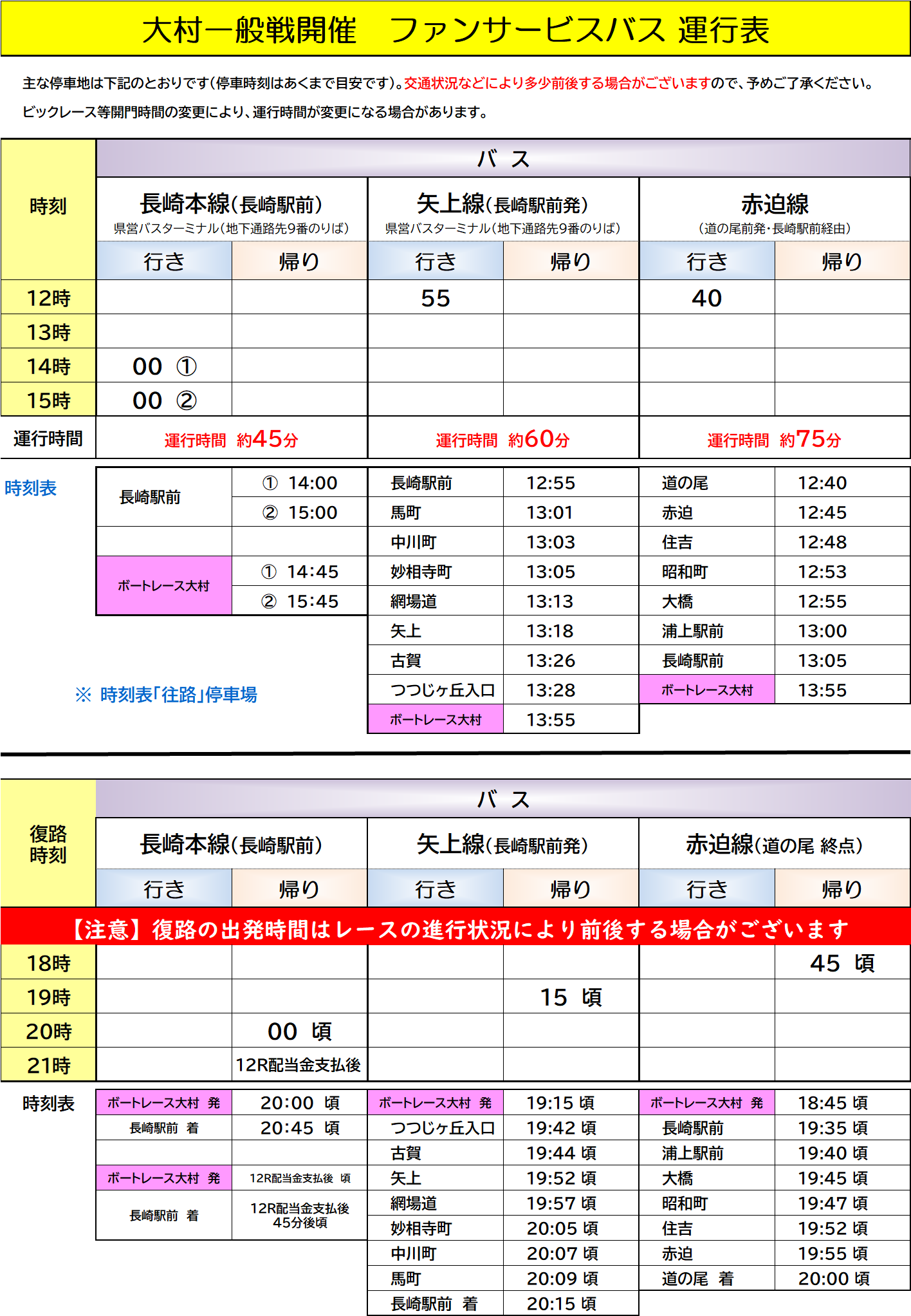 - 場外発売日はファンサービスバスの運行はありません。
