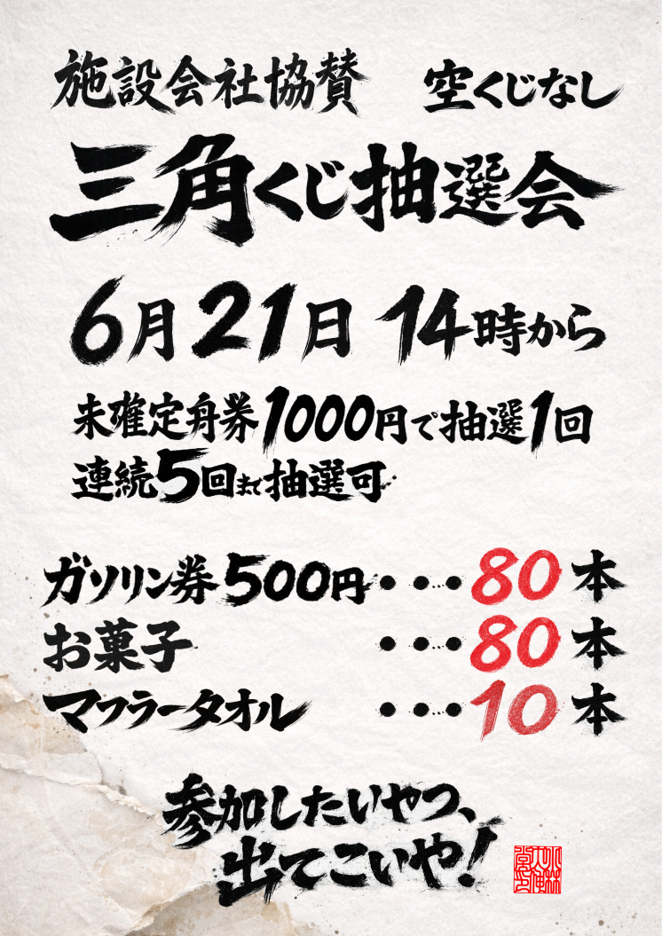 6月21日 モーターボート誕生祭開催記念 三角くじ抽選会