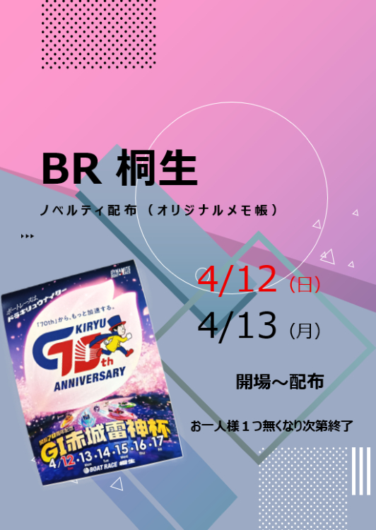 【4月12日(日)、13日(月)】BR桐生ノベルティプレゼント