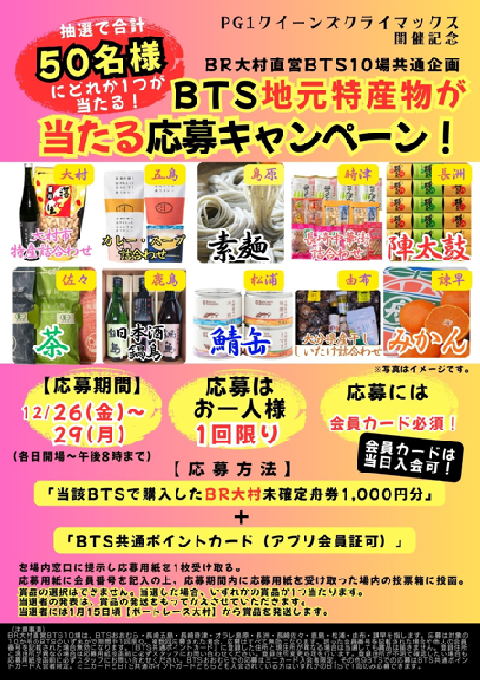 【PG1クイーンズクライマックス開催記念】BTS地元特産物が当たる応募キャンペーン!