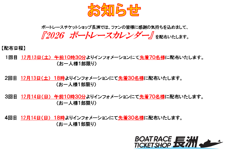 2026年 ボートレースカレンダーの配布
