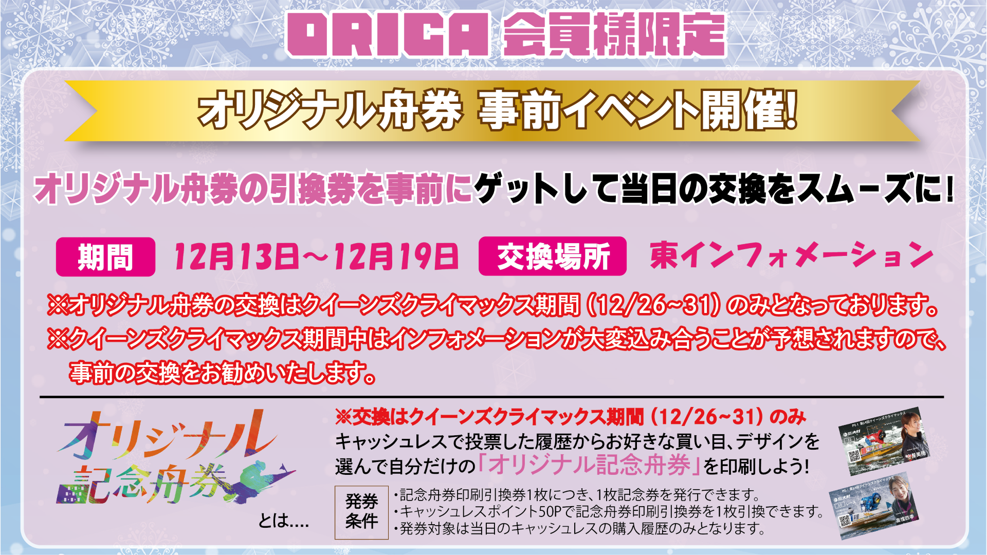 - オリジナル舟券の引換券を事前にゲットできるチャンス!