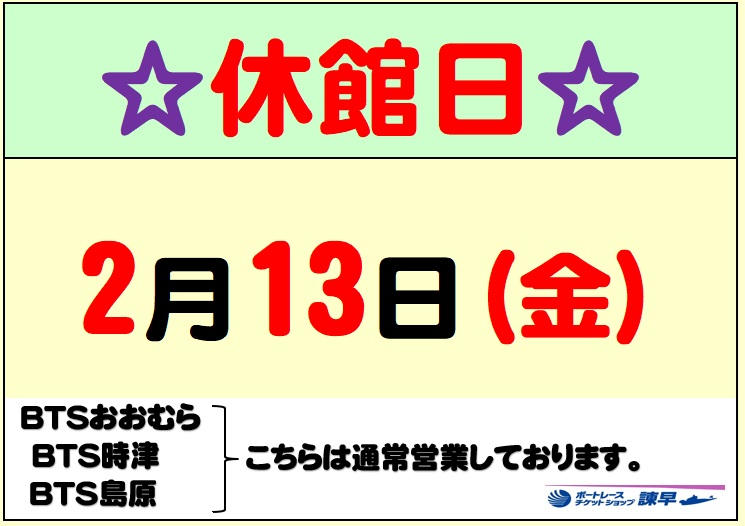 2月休館日のお知らせ