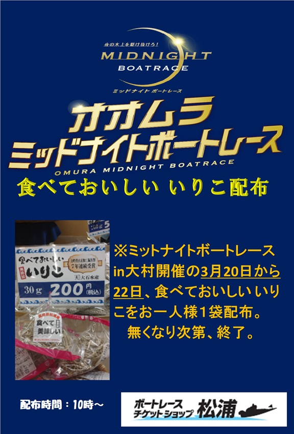 3月20日~22日まで開場より「食べておいしいいりこ」を
