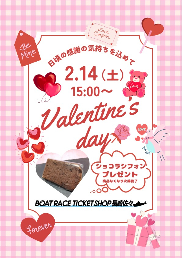 2月14日(土)15:00~バレンタインデーに、ショコラシフォンをプレゼント致します。