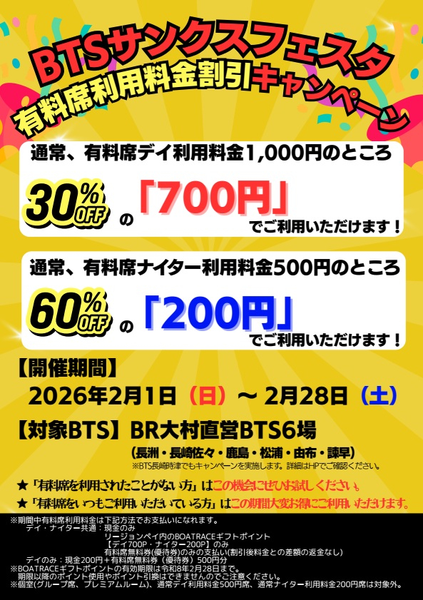 有料席をお得にご利用頂けるチャンスです。ぜひ皆様ご利用ください。