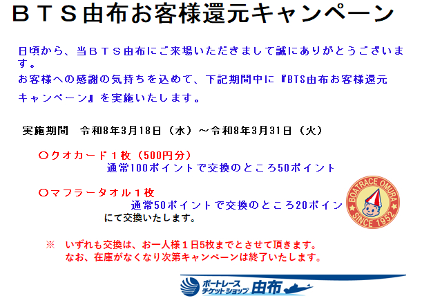 BTS由布・お客様還元キャンペーン
